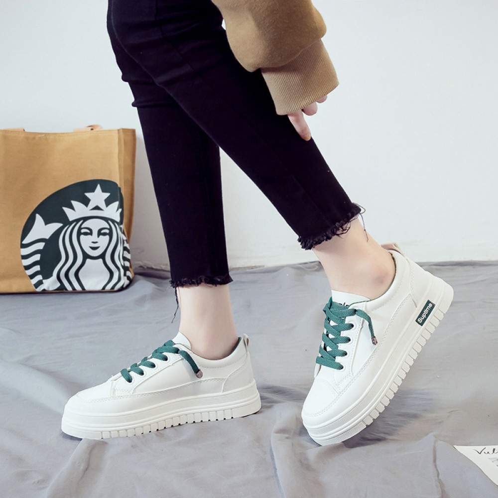 Basic White Shoes Women Spring New Student Flat Running Shoes Women's Lace-Up Platform Shoes